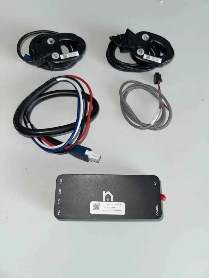 The Neurio control unit measures the amount of power consumed via the current transformers, and sends the information to the Tesla Wall Connector via a 2-wire communication cable that is wired between the Neurio control unit and the Wall Connector.